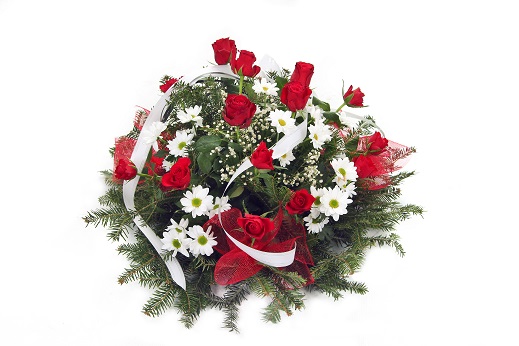 Wiązanka pogrzebowa naturalna – róże czerwone, biała margarytka